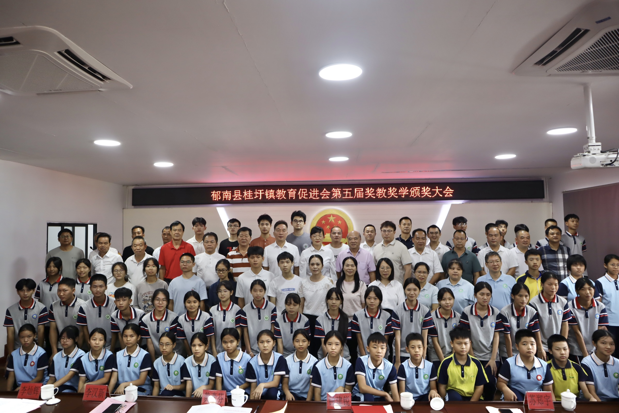活動最后,全體領導、嘉賓、教育促進會理事、各中小學校長與受獎師生共同上臺合影留念。相機快門按下的瞬間,將這一充滿喜悅、感動與希望的時刻永久定格,至此,郁南縣桂圩鎮教育振興促進會第五屆獎教獎學頒獎典禮圓滿落下帷幕。